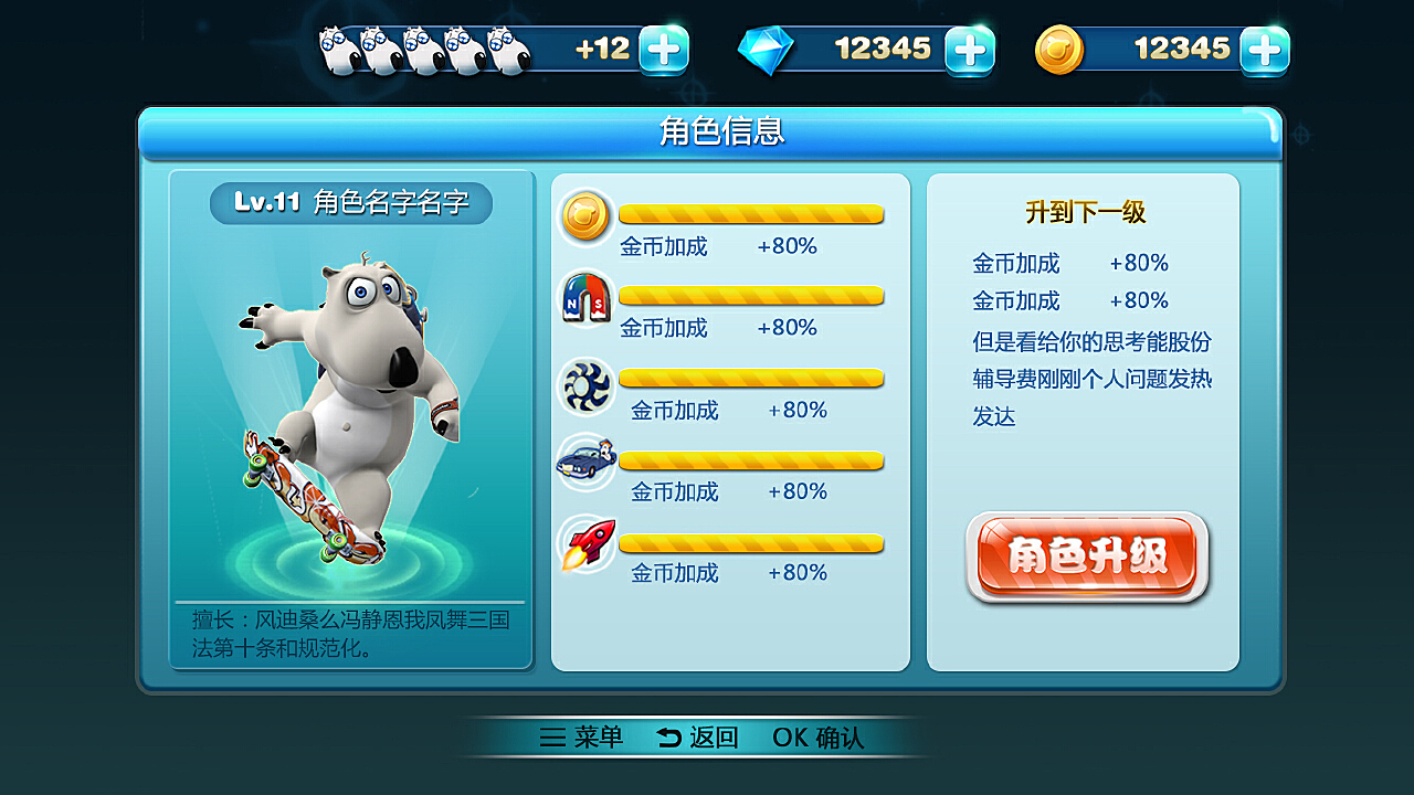 2、使用游戏币或道具提升技能等级。